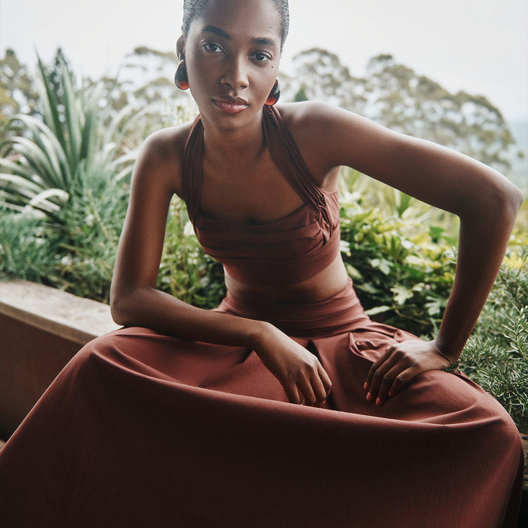 Nature sets the rhythm: earth underfoot, salty skin and sunkissed warmth, silhouettes that move with a gentle ease. Familiar codes remerge, from airy botanicals, softening lines, and sequins that catch the dusk – each refined, each renewed.