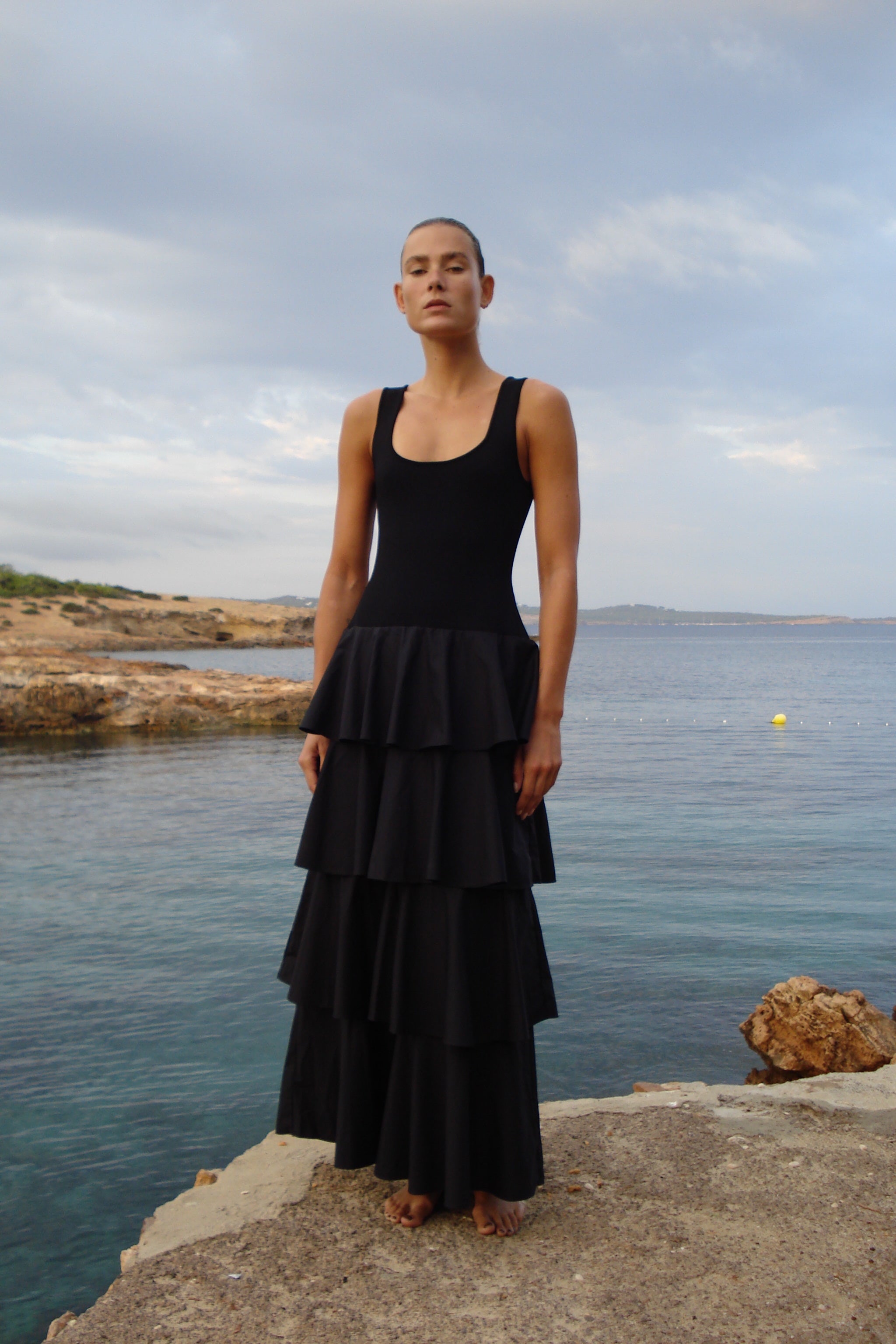 An afternoon in Ibiza—Vera Van Erp moves through sharp shadows, warm air, and the quiet hum of the island. Draped in pieces that shift with the breeze and catch the sun, the season unfolds in contrast—fluid fabrics against weathered stone, structured cuts softened by salt air. Each frame, a glimpse of a long unhurried summer.
