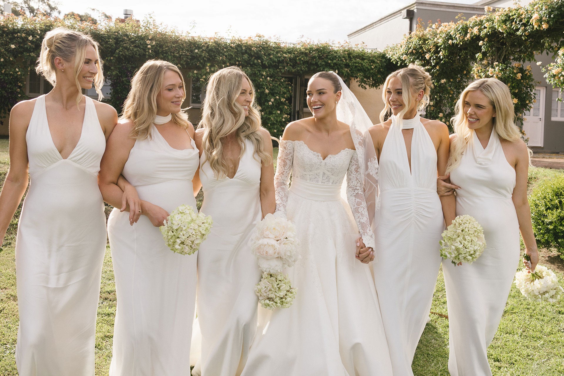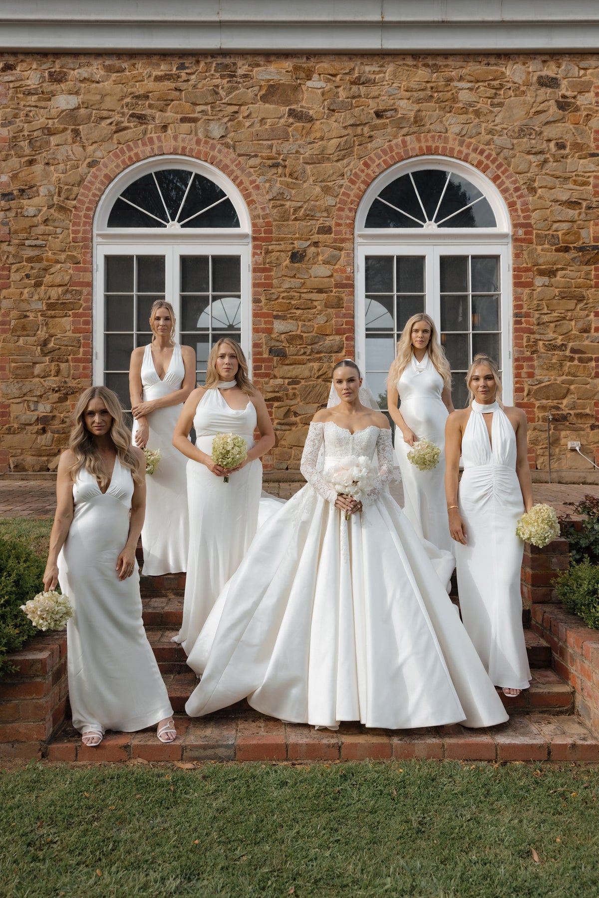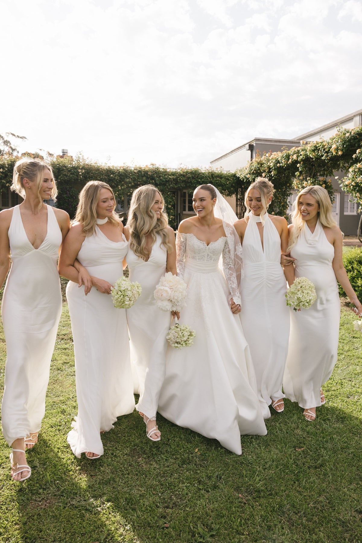 I always had a very clear vision for the bridesmaids’ dresses. I knew quite early on that I wanted them in white, which definitely surprised a few people at first. But for me, trends come and go, and white is timeless. It’s classic, traditional and never dates. I loved the idea that when we look back at these photos in 15 or 20 years, the dresses will still feel elegant and on trend because white never goes out of style. It also felt incredibly cohesive with the overall palette and aesthetic of the wedding. The venue, the florals, the styling, everything had a soft, refined, European feel, and the white dresses elevated that atmosphere beautifully. I wanted the bridal party to feel unified, but not uniform.