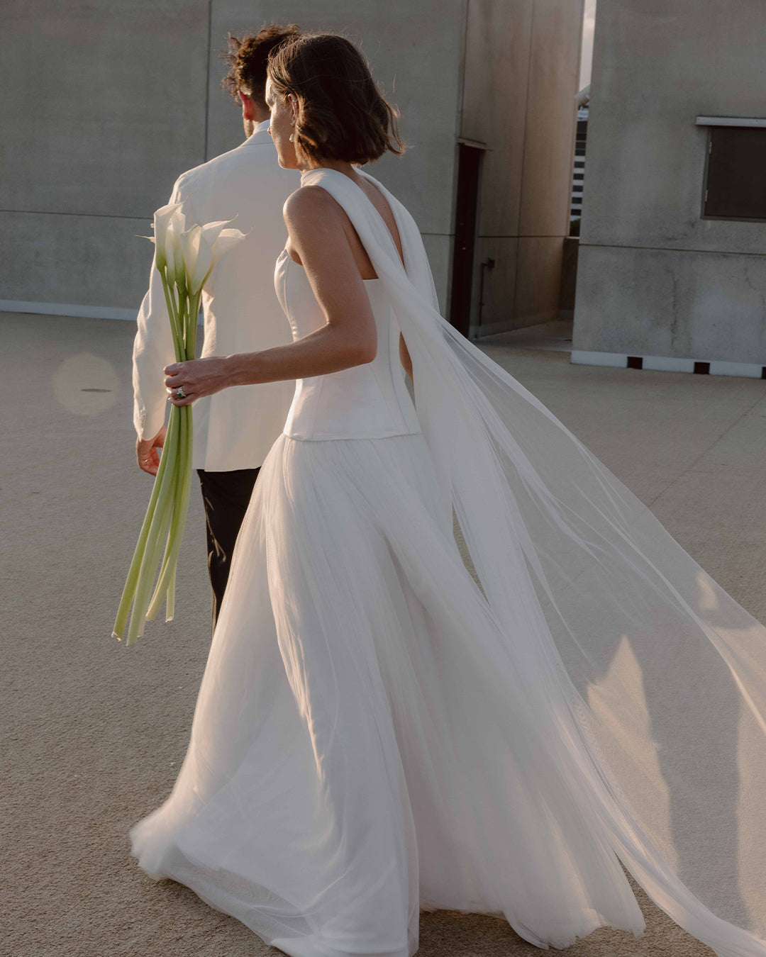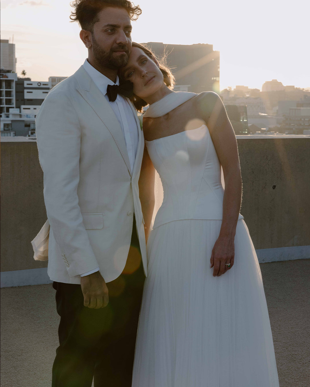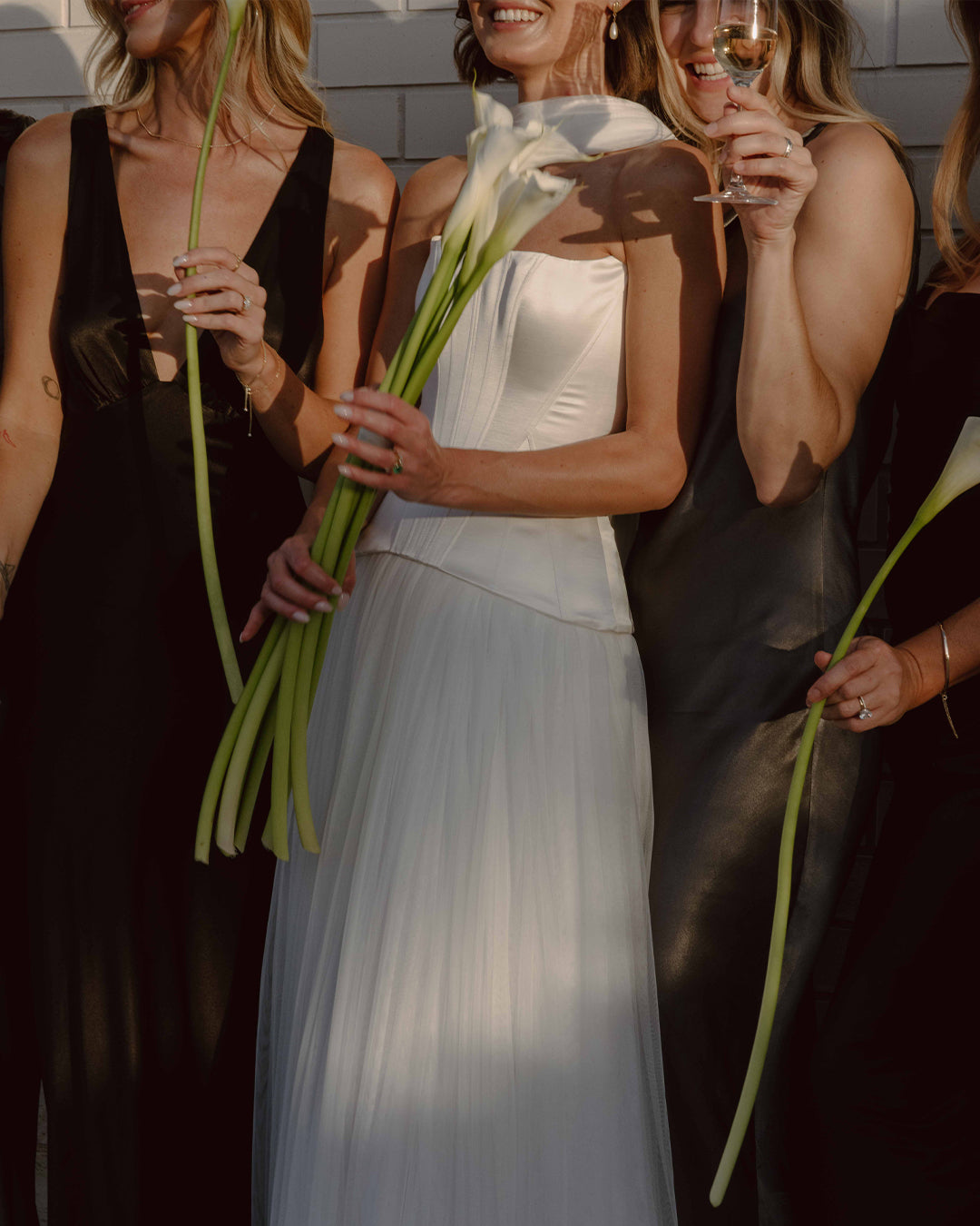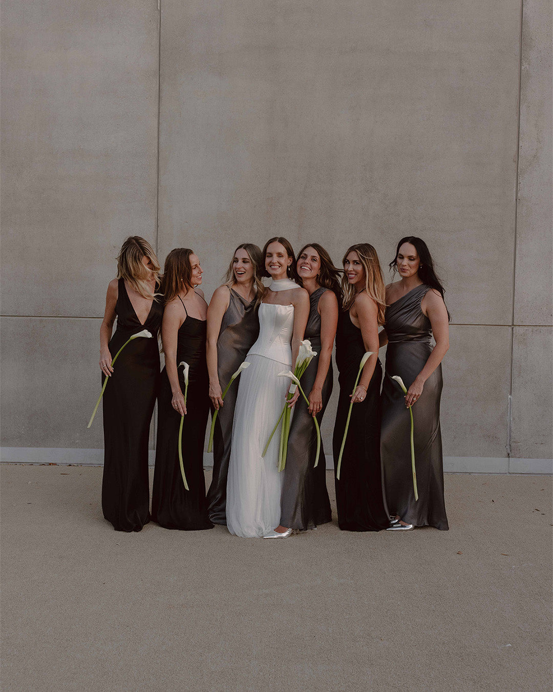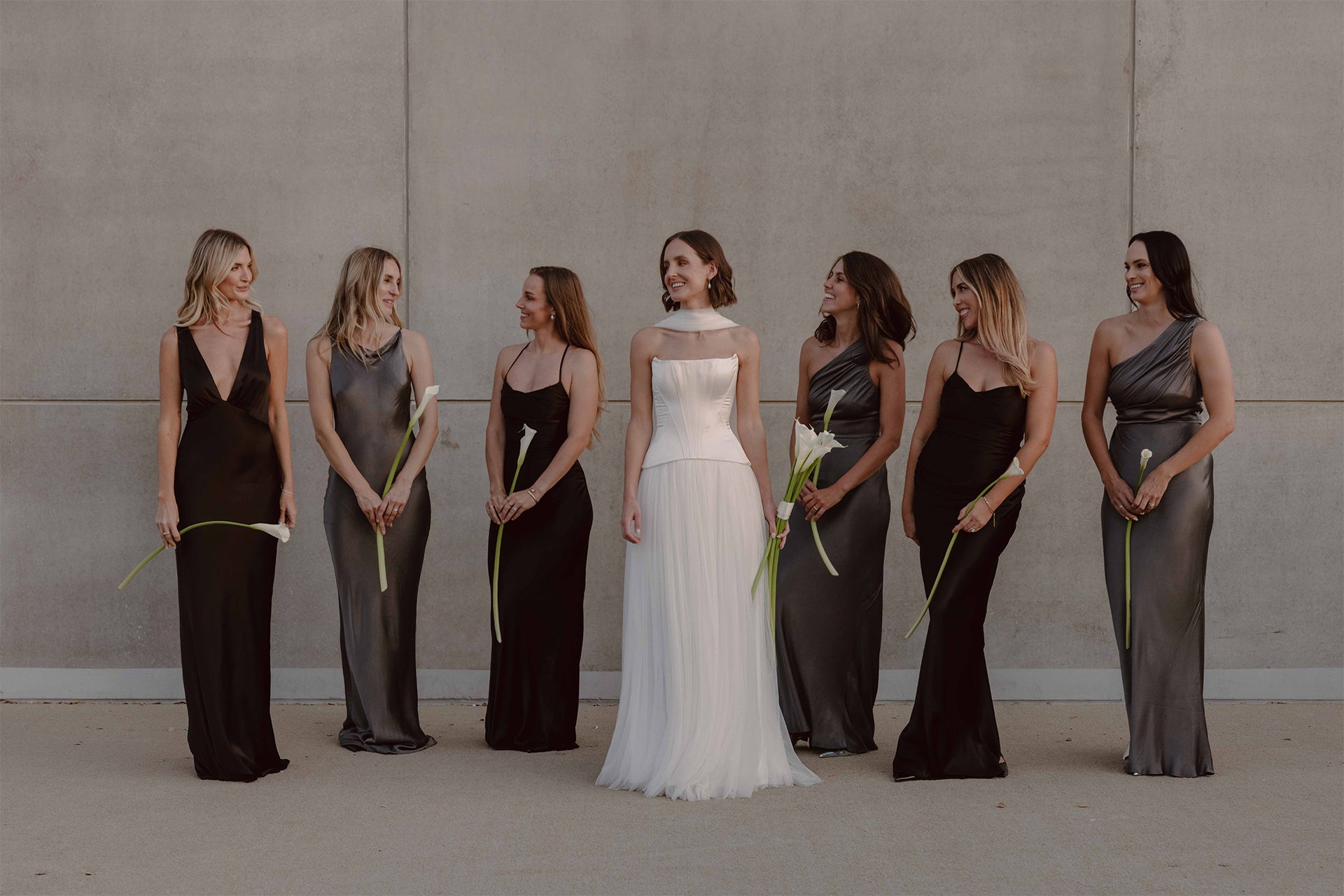 Minimalist flair met personal touches in a black-tie affair to remember, with the hotel’s neutral architectural backdrop perfectly complementing the couple’s vision. The bridal party, adorned in refined silhouettes from our La Lune collection in black and graphite hues, harmonising with the natural tones of the Australian landscape that inspired Eva’s vision.