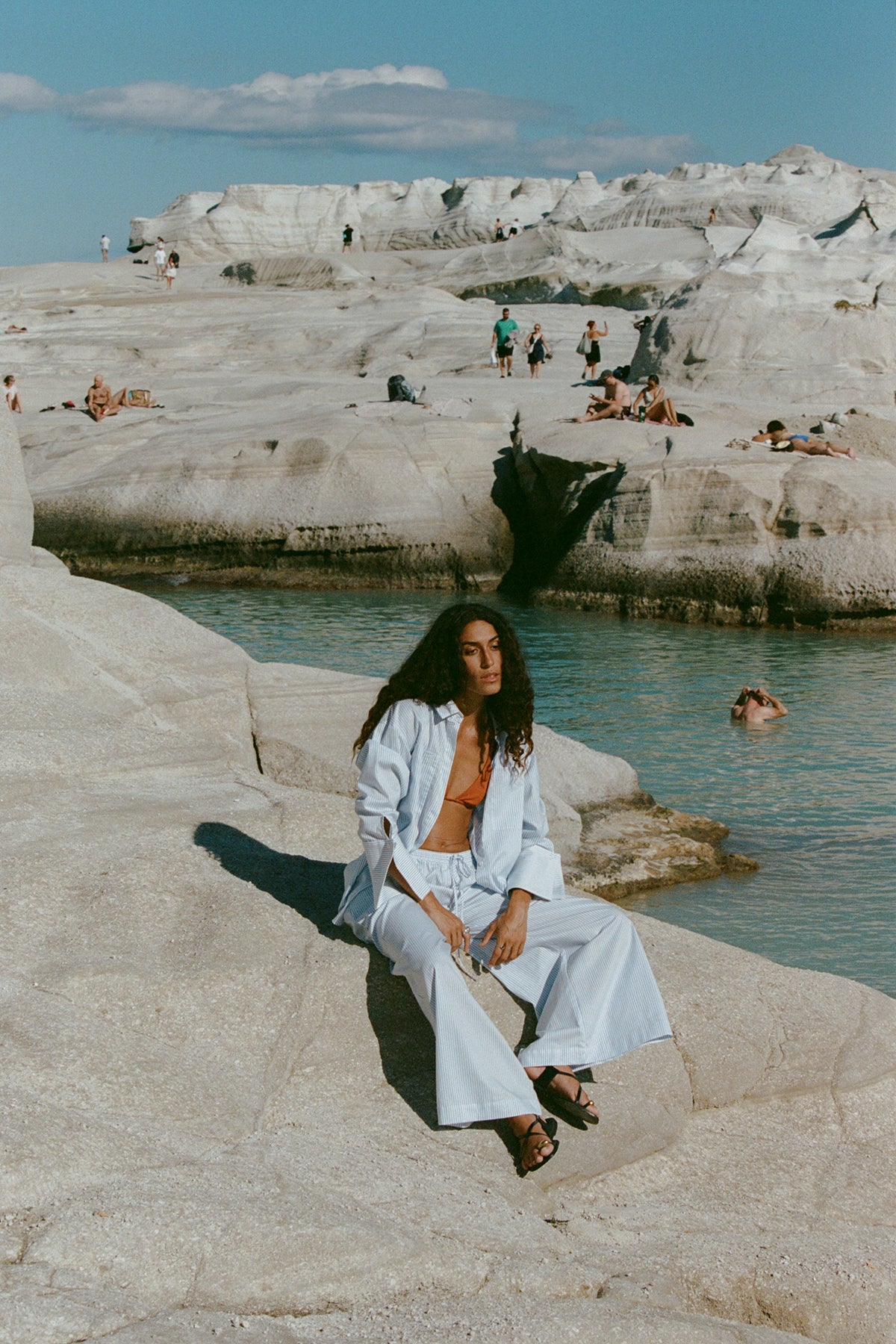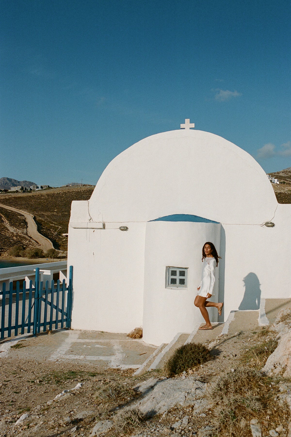 Against the white curves and mineral blues of Milos, we follow artist and muse Marianne Roussety.